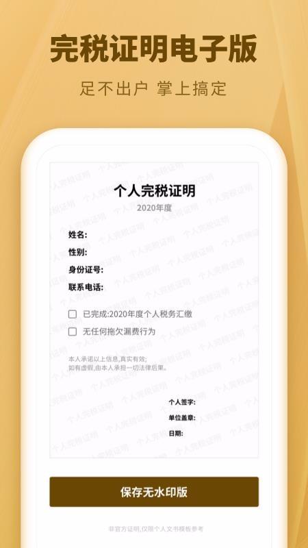 3、保存个人完税证明,查看该证明页面资料的时候可以点击保存无水印版的证明;